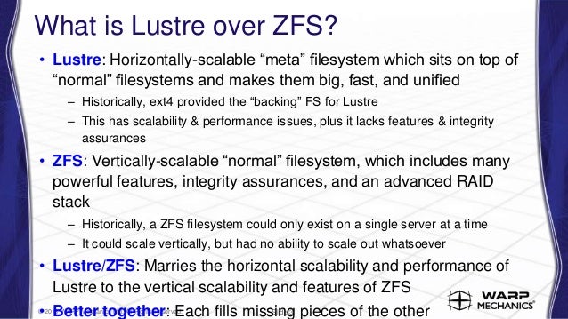 • The Lustre file system is a parallel file system used in a wide range of HPC environments